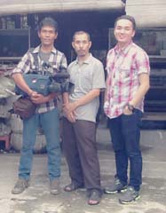Dari kiri ke kanan, Yuli Sasmito (Kamerawan SCTV), Slamet (Pemilik Pondok Air) dan Putra Mahendra (Reporter SCTV) foto bersama saat peliputan di area Pondok Air di Jakarta
