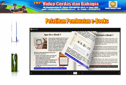 Hidup Cerdas dan Bahagia LKP SK Kemenkumham RI : Nomor AHU-0007461-AH.01.14 Tahun 2024 www.hanya1.com email = cerdas.bahagia.2000@gmail.com , No. Kontak = 081293957373 Pelatihan Pembuatan e-Books