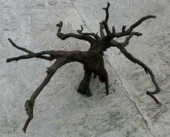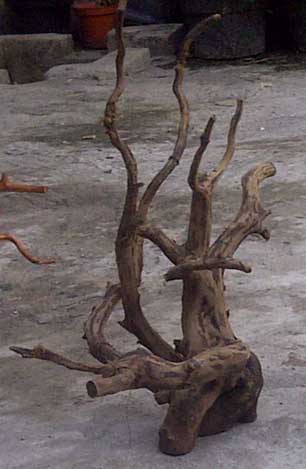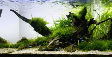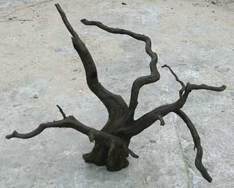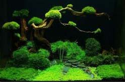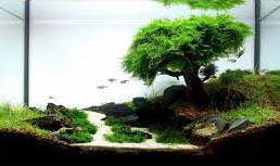 Untuk melengkapi dekorasi dalam akuarium, orang sering menggunakan Kayu baik sebagai tempat untuk pertumbukan tanaman maupun sebagai pelengkap dekorasi. Tentunya kayu yang dipakai bukanlah asal kayu/sembarang kayu. Kayu yang dipakai biasanya dipilih baik motif/model maupun jenis kayunya. Secara umum ada dua motif yang dipakai, yaitu motif akar dan motif relief. Kayu akar biasanya dipakai dalam pembuatan aquascape, yaitu untuk menempelkan berbagai jenis Moss. Posisi kayu ini diletakkan terbalik dari keadaan sebenarnya, dimana batang kayu berada di bawah dan akar kayu berada di atas sebagai fungsi ranting. Cara melekatkan moss pada kayu adalah moss ditempelkan pada permukaan kayu kemudian diikat menggunakan benang jahit. Dengan kecermatan penempatan/penempelan moss pada akar tersebut serta ketelatenan pembuatannya maka akan menghasilkan sebuah pohon hidup dalam akuarium tampak indah dan alami.